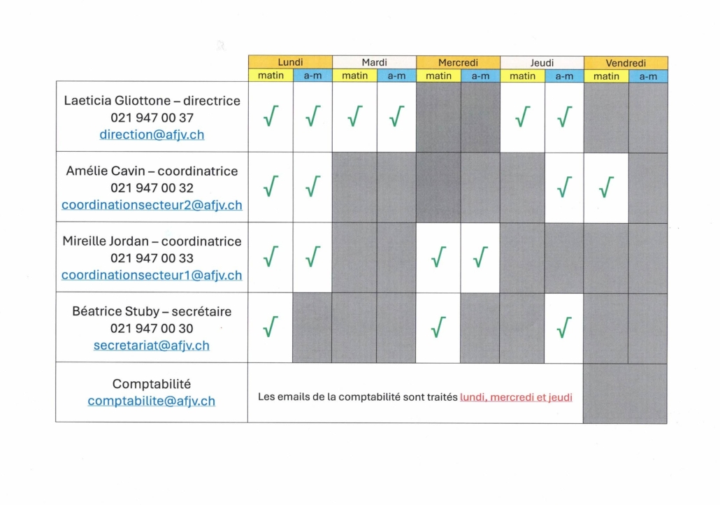 Mme Jordan pour Châtel-St-Denis/Les Paccots et Mme Cavin pour les autres localités de la Veveyse.